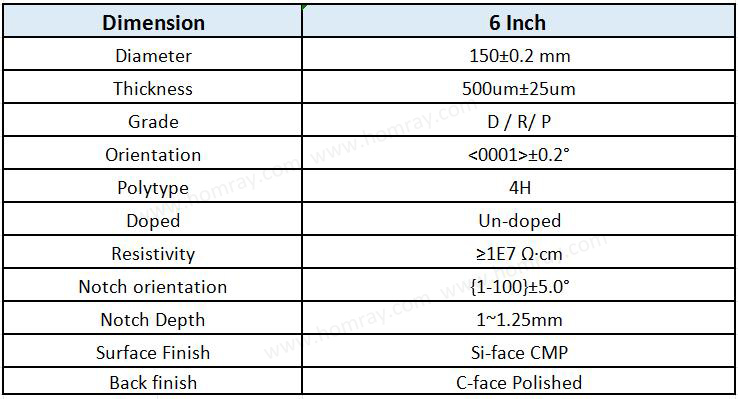 6 inch 4H-HPSI SiC Wafer Basic Spec
